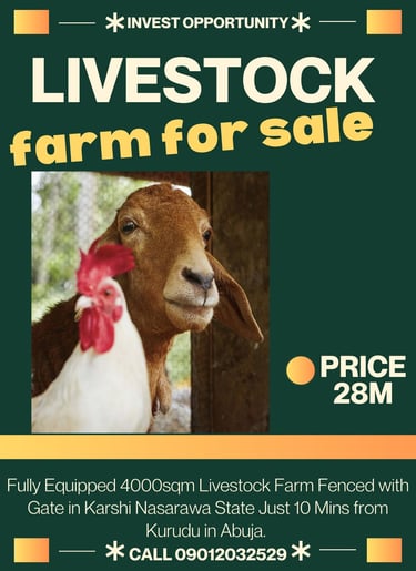 Are you seeking a lucrative investment in Nigeria's thriving agricultural sector? Look no further! This exceptional 4000sqm equipped livestock farm, ideally located in Karishi, Nasarawa State, is now available for purchase.