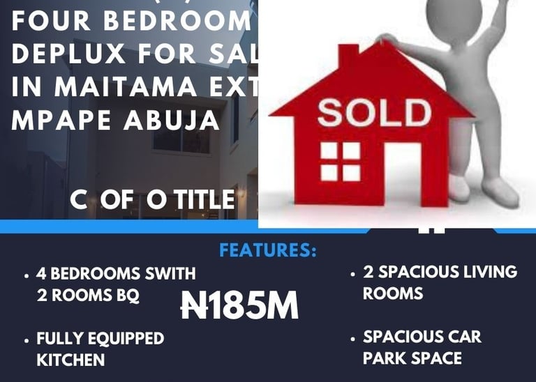 Spacious ₦185m Four (4) Bedroom Semi Detached Duplex with Office Space option in maitama extension along mpape road Abuja.