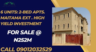 Prime Investment Opportunity : Secure a promising investment in a rapidly developing area of Abuja. We are pleased to present this six (6) newly constructed 2-bedroom apartments, strategically located in Maitama Extension along Mpape Road. This property offers a unique opportunity for discerning investors seeking substantial returns in a high-potential location.