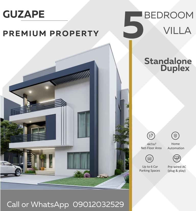 Nestled in the heart of Guzape, Abuja, this standalone duplex offers an unparalleled living experience. This 5-bedroom villa, boasting a generous 447m² land area, is situated within a prestigious estate designed for modern living.